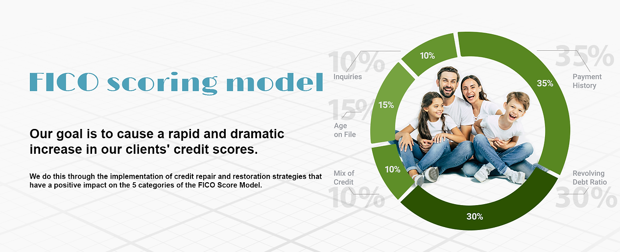 To achieve this goal, we do two things. First, we get negative items off the credit report. Second, we help our clients to strategically add and manage open accounts. We do both things simultaneously to cause a rapid and dramatic increase to the credit score.